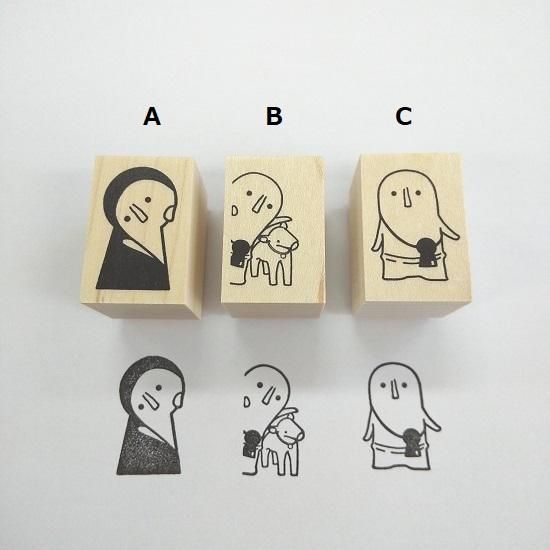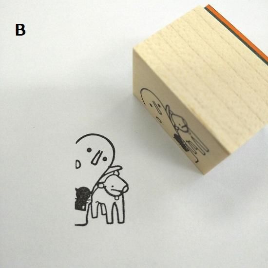 B:馬はにわと一緒のハニワスキー。縦の線があるものの横に押すとひょっこりしている様子になります。